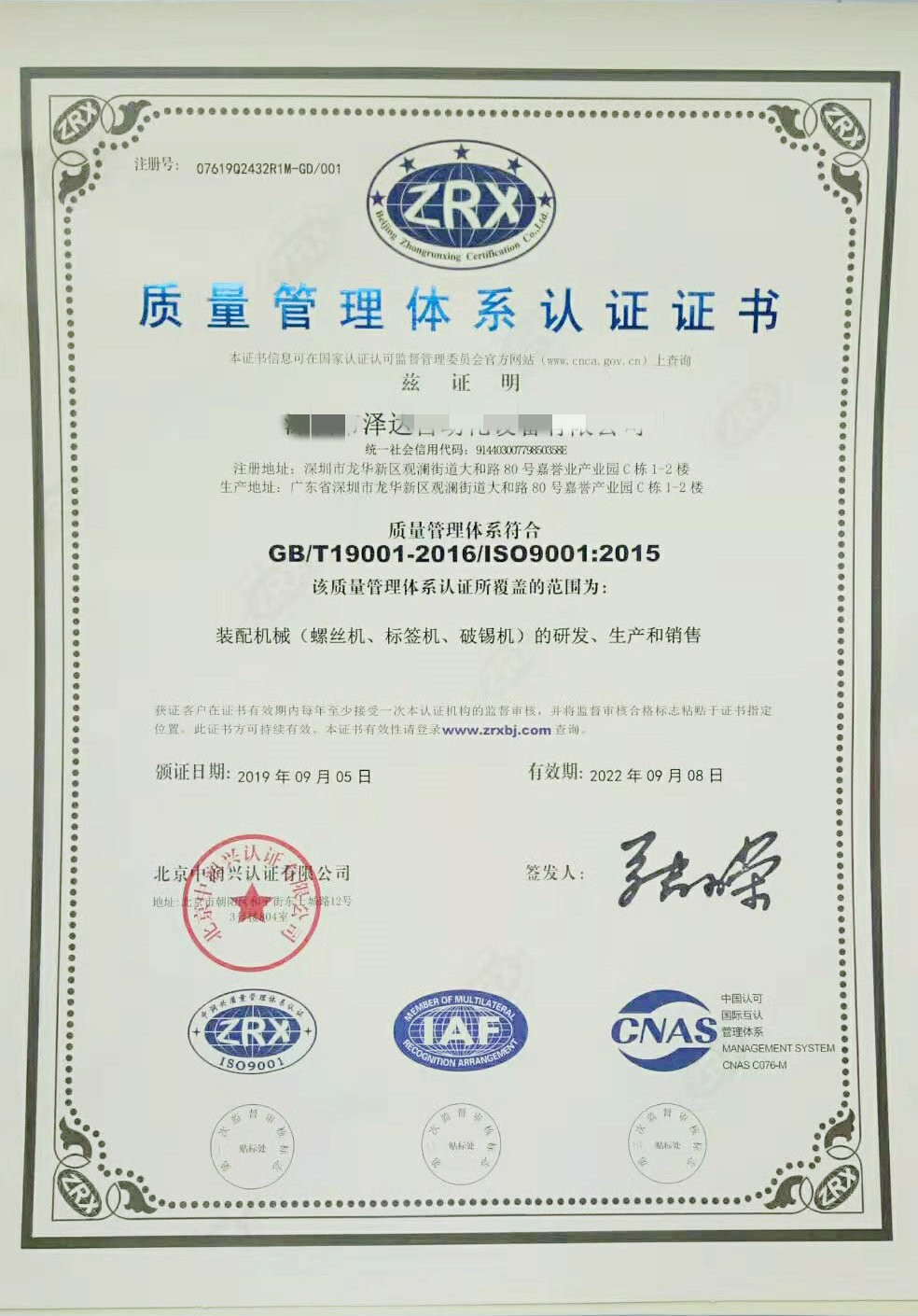 螺絲機(jī)專(zhuān)業(yè)生產(chǎn)廠家已通過(guò)ISO9001質(zhì)量管理體系認(rèn)證